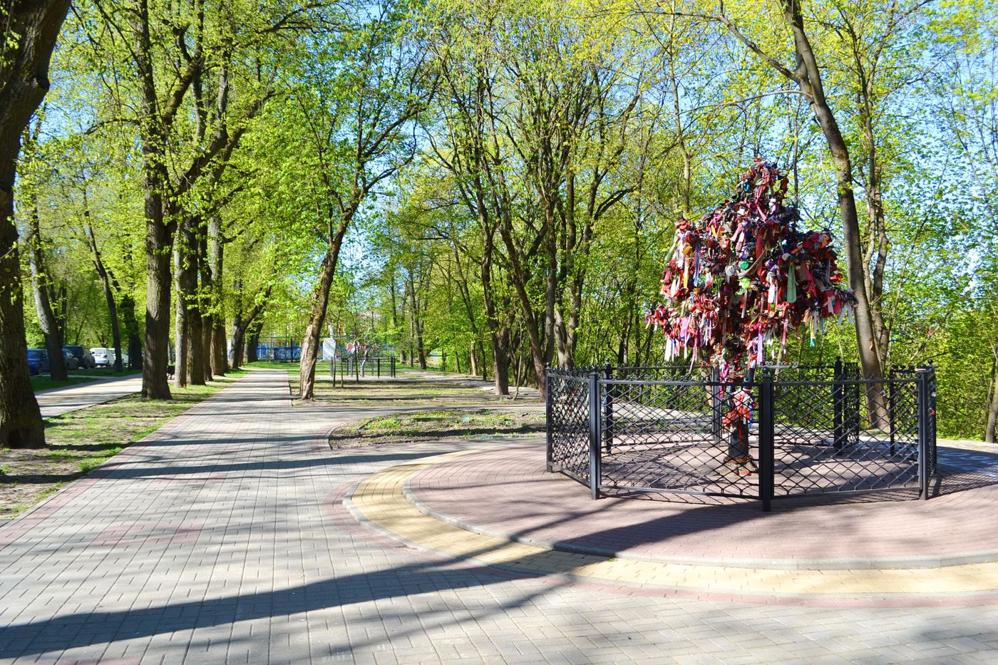 Деревья счастья находятся рядом с Каменным мостом. Раньше молодожены вешали традиционные замочки на парапет моста. Потом это запретили. Для молодоженов поставили «дерево счастья». Одного, со временем стало мало. Во время экскурсии по Калуге, вы узнаете, какая есть примета для тех, кто желает пополнения в семье.